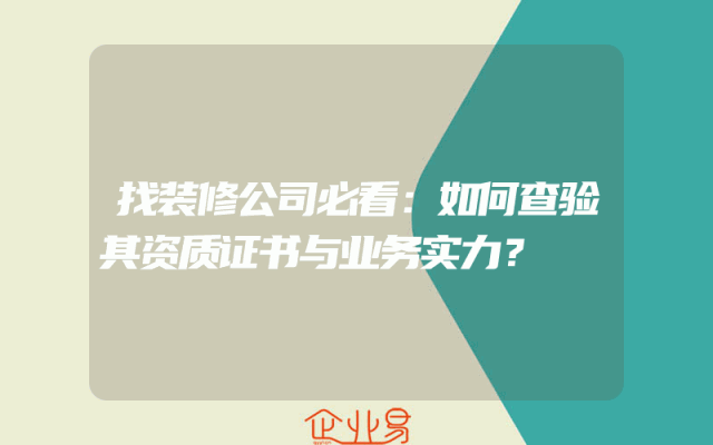 - 找装修公司必看:如何查验其资质证书与业务实力?