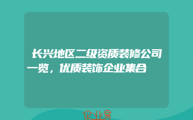 - 长兴地区二级资质装修公司一览,优质装饰企业集合