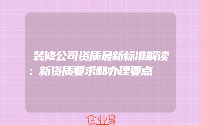 - 装修公司资质最新标准解读:新资质要求和办理要点