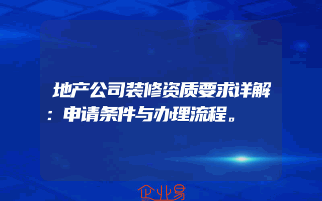 - 地产公司装修资质要求详解:申请条件与办理流程。