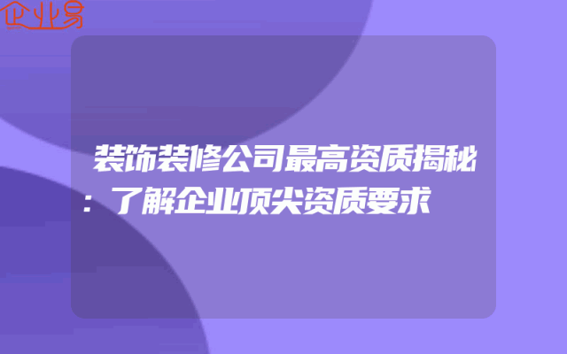 - 装饰装修公司最高资质揭秘:了解企业顶尖资质要求
