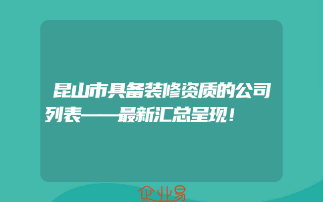 - 昆山市具备装修资质的公司列表——最新汇总呈现!