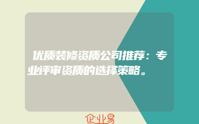 - 优质装修资质公司推荐:专业评审资质的选择策略。