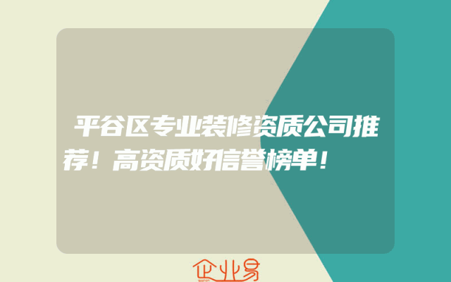 - 平谷区专业装修资质公司推荐!高资质好信誉榜单!