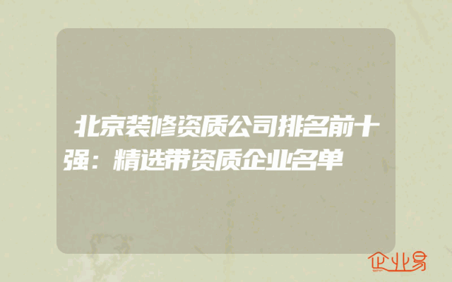 - 北京装修资质公司排名前十强:精选带资质企业名单