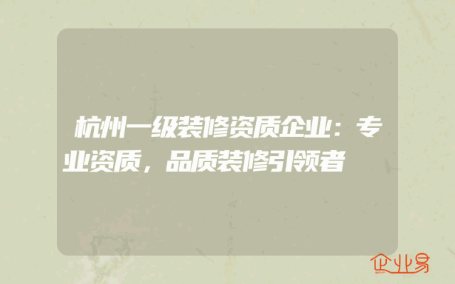 - 杭州一级装修资质企业:专业资质,品质装修引领者企业资质成就专业地位在杭州这座充满活力的城市,拥有一级装修资质的企业,无疑是装修行业的翘楚。这样的企业,其资质是经过严格的审核和评估得到的,代表着企业在资金、人员、技术、管理等方面的综合