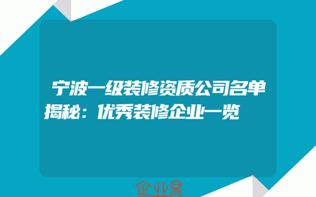 - 宁波一级装修资质公司名单揭秘:优秀装修企业一览