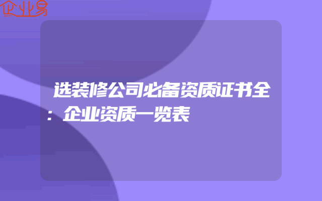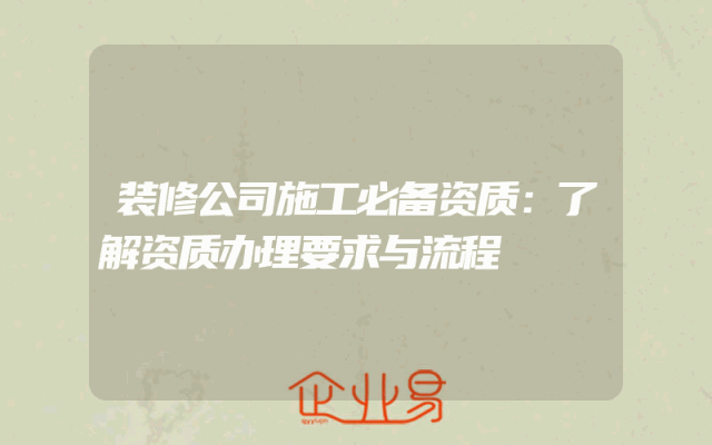 - 装修公司施工必备资质:了解资质办理要求与流程