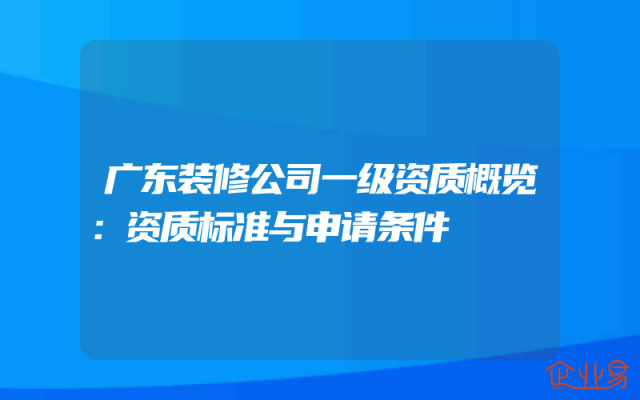 - 广东装修公司一级资质概览:资质标准与申请条件