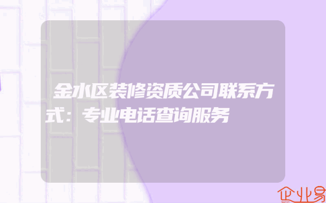 - 金水区装修资质公司联系方式:专业电话查询服务