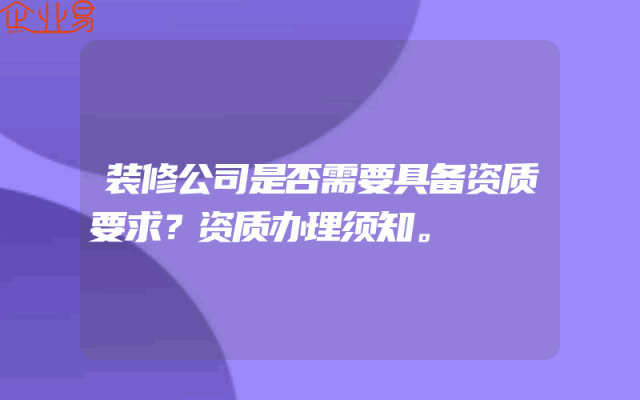- 装修公司是否需要具备资质要求?资质办理须知。