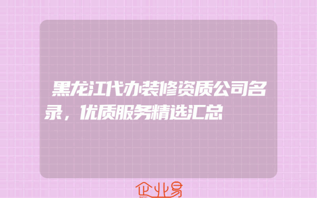 - 黑龙江代办装修资质公司名录,优质服务精选汇总