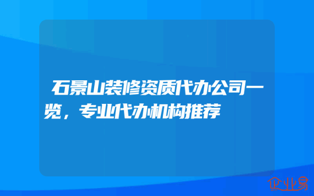 - 石景山装修资质代办公司一览,专业代办机构推荐