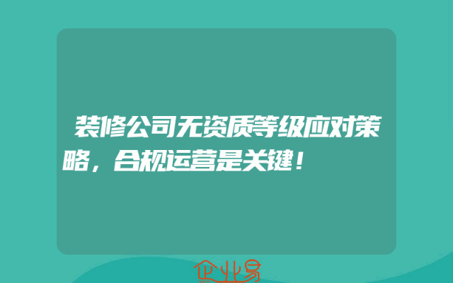 - 装修公司无资质等级应对策略,合规运营是关键!