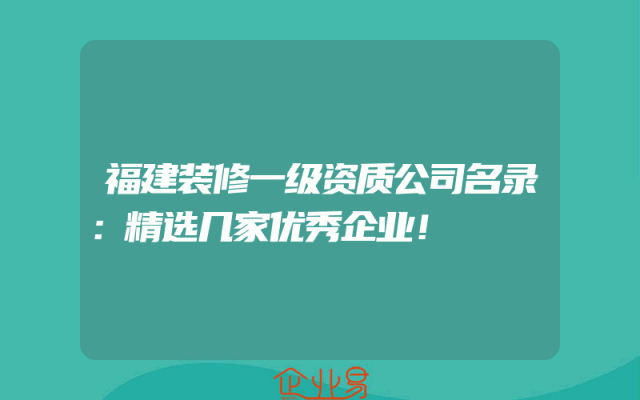 - 福建装修一级资质公司名录:精选几家优秀企业!