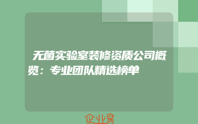 - 无菌实验室装修资质公司概览:专业团队精选榜单