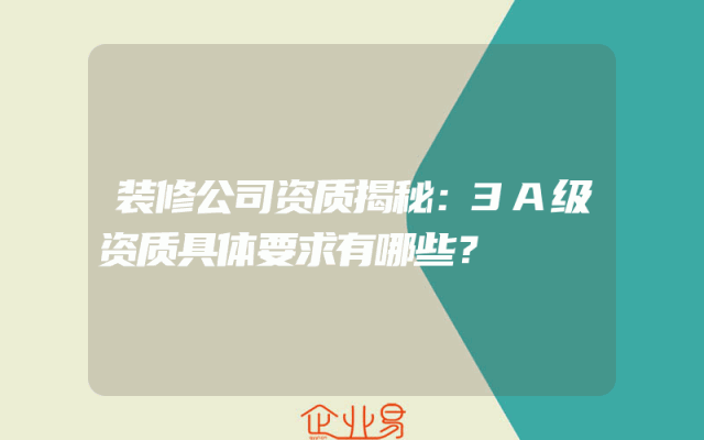 - 装修公司资质揭秘:3A级资质具体要求有哪些?