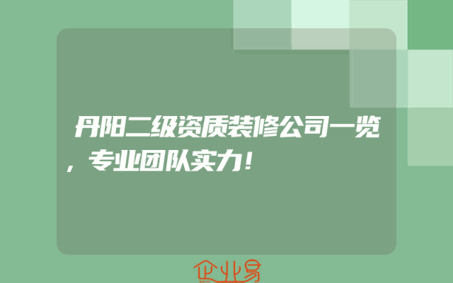 - 丹阳二级资质装修公司一览,专业团队实力!