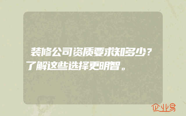 - 装修公司资质要求知多少?了解这些选择更明智。