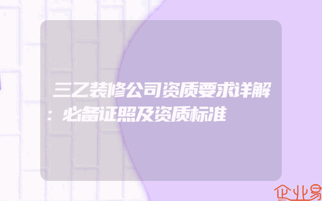 - 三乙装修公司资质要求详解:必备证照及资质标准