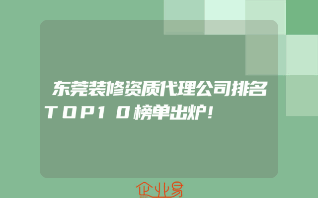 - 东莞装修资质代理公司排名TOP10榜单出炉!