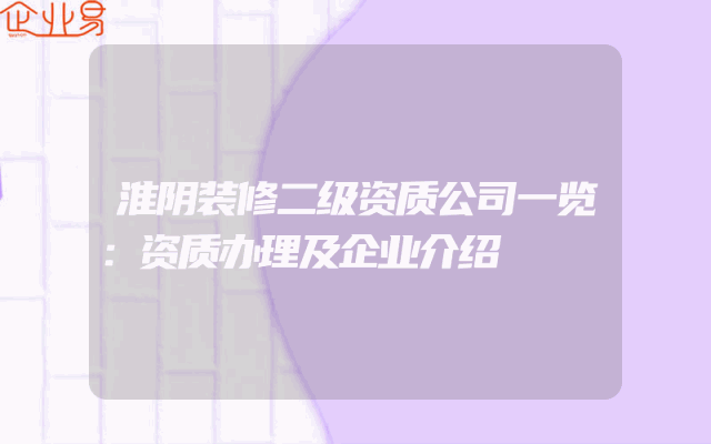 - 淮阴装修二级资质公司一览:资质办理及企业介绍