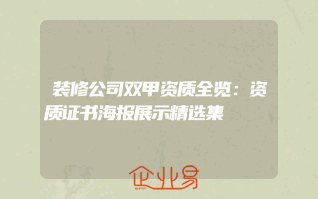 - 装修公司双甲资质全览:资质证书海报展示精选集