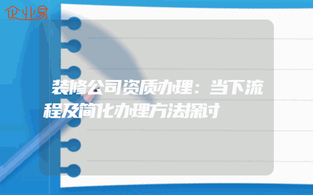 - 装修公司资质办理:当下流程及简化办理方法探讨