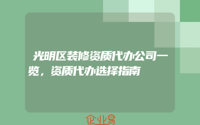 - 光明区装修资质代办公司一览,资质代办选择指南