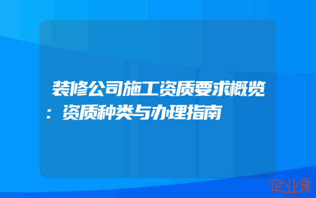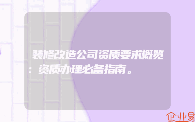 - 装修改造公司资质要求概览:资质办理必备指南。