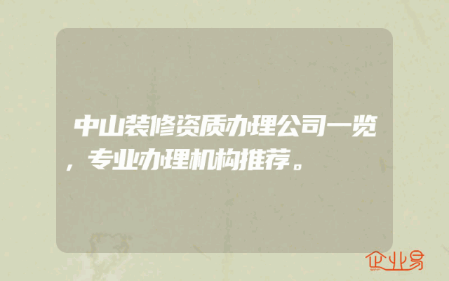 - 中山装修资质办理公司一览,专业办理机构推荐。