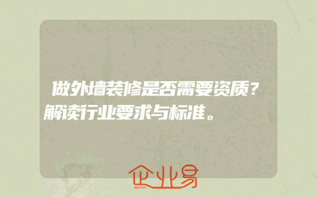 - 做外墙装修是否需要资质?解读行业要求与标准。