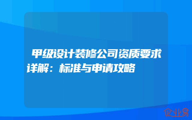 - 甲级设计装修公司资质要求详解:标准与申请攻略