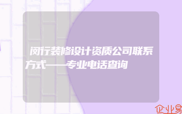 - 闵行装修设计资质公司联系方式——专业电话查询
