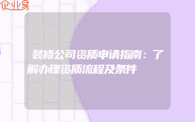 - 装修公司资质申请指南:了解办理资质流程及条件