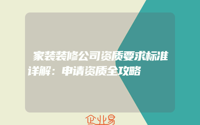 - 家装装修公司资质要求标准详解:申请资质全攻略