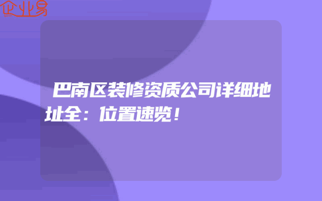 - 巴南区装修资质公司详细地址全解析:位置速览!一、巴南区装修行业概况巴南区作为重庆市的一个重要区域,装修行业发展迅速,众多装修资质公司在这里汇聚。这些公司涵盖了室内设计、施工监理、材料供应等多个领域,为市民提供全方位的装修服务。为了找到合适的