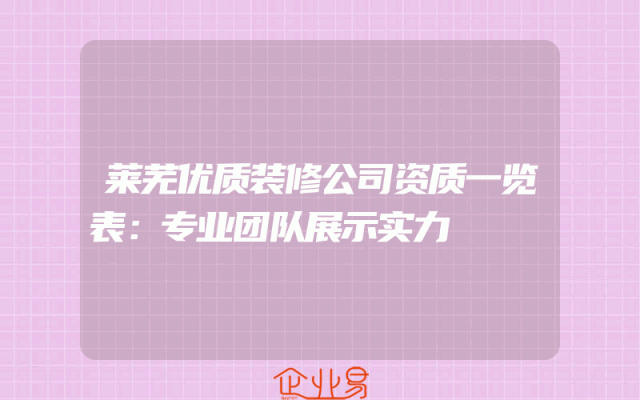 - 莱芜优质装修公司资质一览表:专业团队展示实力