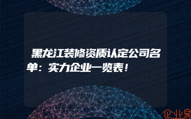 - 黑龙江装修资质认定公司名单:实力企业一览表!