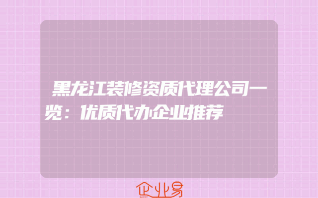 - 黑龙江装修资质代理公司一览:优质代办企业推荐