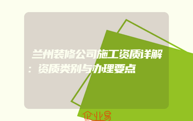 - 兰州装修公司施工资质详解:资质类别与办理要点