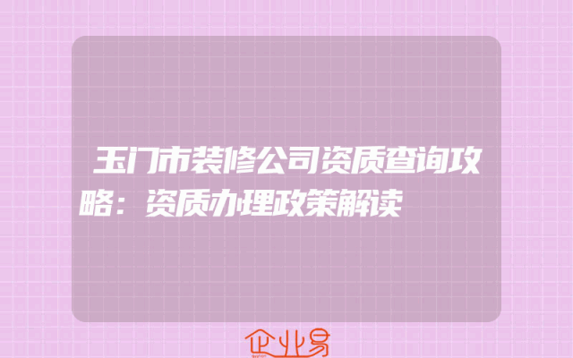 - 玉门市装修公司资质查询攻略:资质办理政策解读