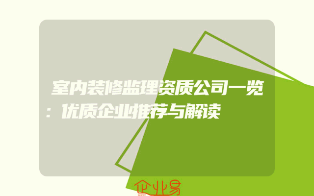 - 室内装修监理资质公司一览:优质企业推荐与解读