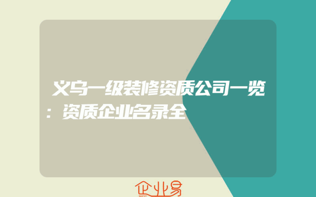 - 义乌一级装修资质公司一览:资质企业名录全