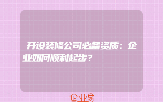 - 开设装修公司必备资质:企业如何顺利起步?