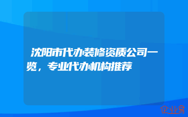 - 沈阳市代办装修资质公司一览,专业代办机构推荐