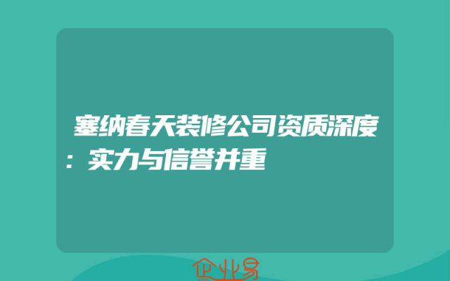 - 塞纳春天装修公司资质深度:实力与信誉并重