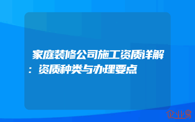 - 家庭装修公司施工资质详解:资质种类与办理要点