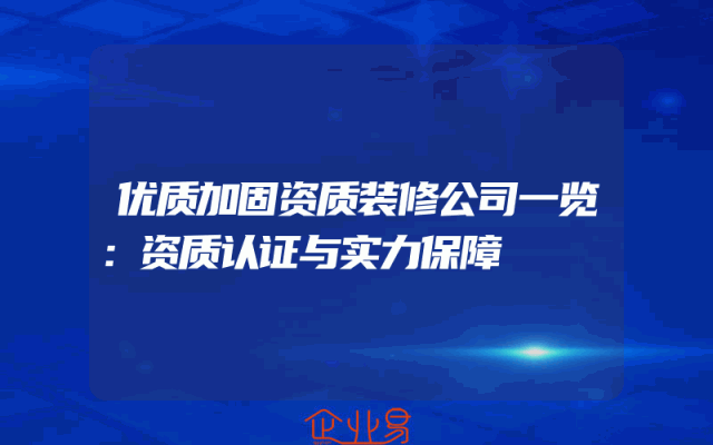 - 优质加固资质装修公司一览:资质认证与实力保障