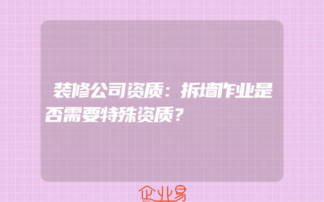 - 装修公司资质:拆墙作业是否需要特殊资质?
